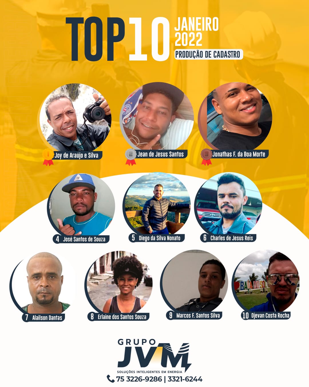 Apresentamos abaixo o ranking de produtividade do mês de janeiro